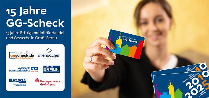 Seit nunmehr 15 Jahren steht der GG-Scheck für lokales Einkaufen, gelebte Stadtgemeinschaft und die Stärkung des Handels vor Ort. Was im Jahr 2010 als Gemeinschaftsprojekt der Kreisstadt Groß-Gerau und des Gewerbevereins Groß-Gerau 1865 e.V. mit einer einfachen Gutscheinkarte im Wert von 10 Euro begann, hat sich zu einem echten Erfolgsmodell entwickelt. Der GG-Scheck hat in dieser Zeit wesentlich dazu beigetragen, die Kaufkraft in der Stadt zu halten und die Attraktivität des lokalen Einzelhandels, der Gastronomie und der Dienstleistungsbetriebe nachhaltig zu fördern.