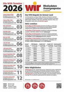 Das nächste WIR-Magazin kommt am 24. Jan. 2026. Redaktionsschluss 9. Jan., Anzeigenschluss: 14. Jan. 2026